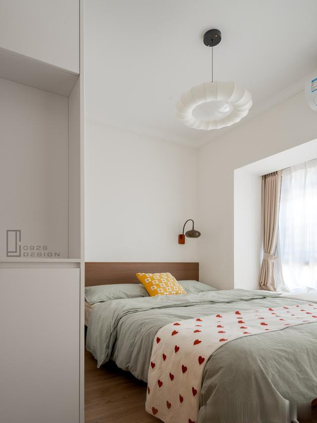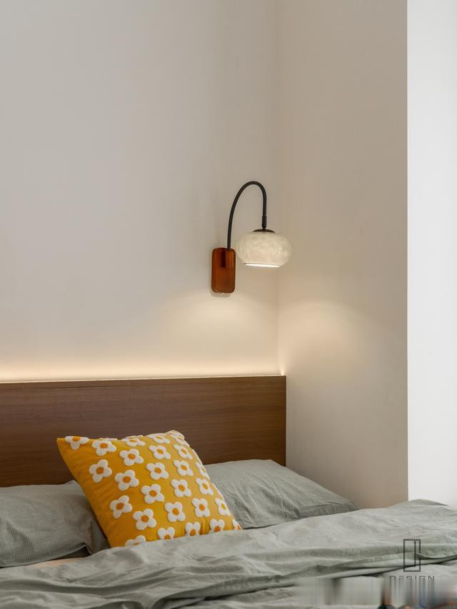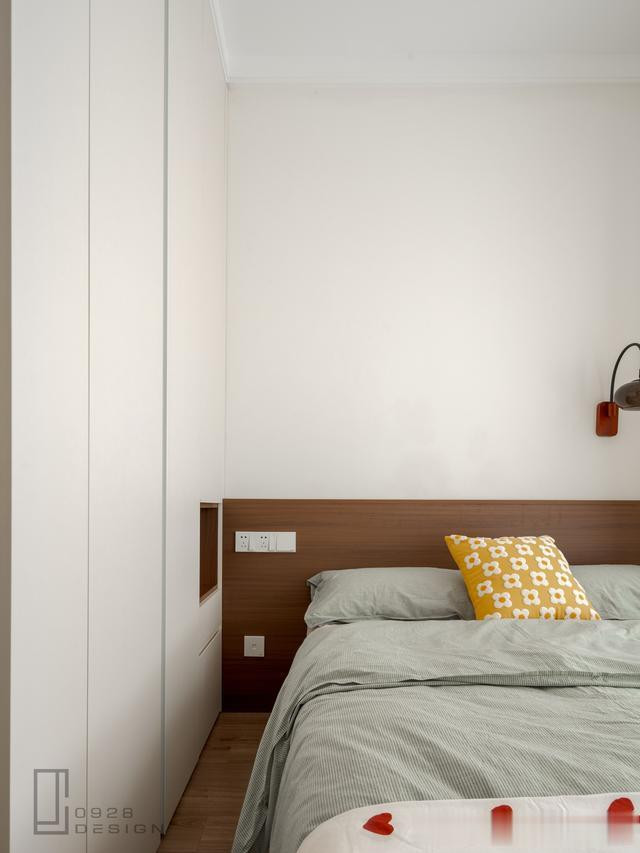 小空间的床头定制背板取代了传统的床头靠背,这样不仅节省了空间,还让整个卧室看起来更加简洁和大气。同时,也让床尾的空间变得更加宽敞。
