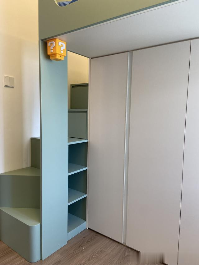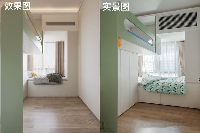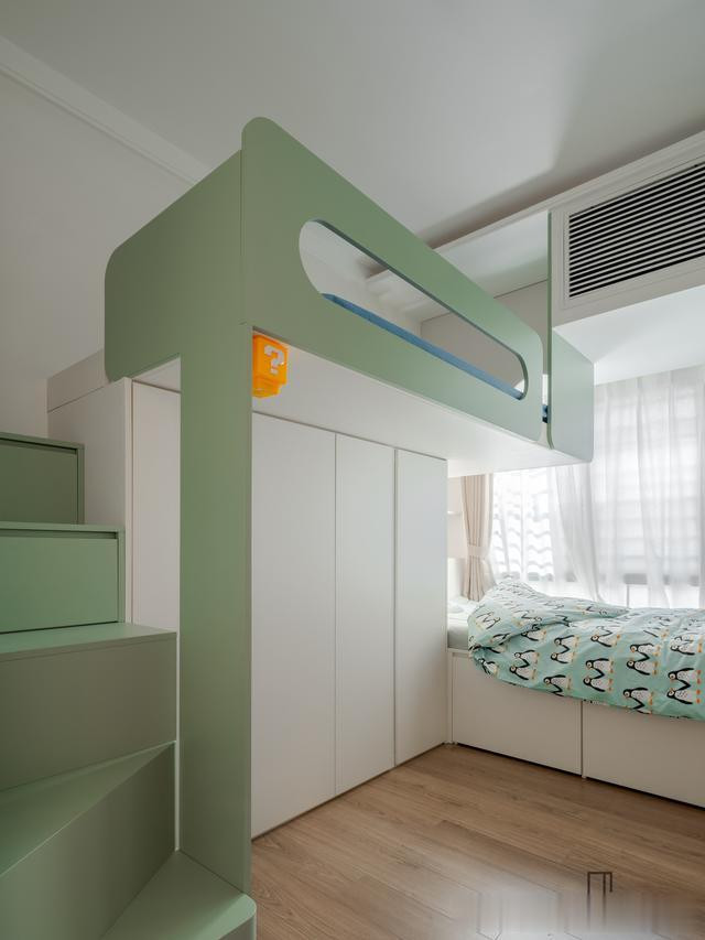 6.儿童房做错位上下铺,各自拥有独立休息空间,上床下柜,满足两人收纳。