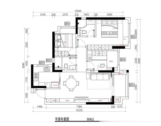 4.主卧 1.8米床,无法满足三侧行走,收纳空间严重不足,需要满足业主偶尔居家办公的需求