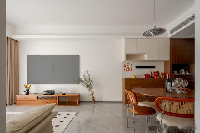 电视柜与餐边柜之间,巧妙地预留了一个空位,未来放置钢琴的位置,这样布局,既满足了当下的生活需求,也为未来预留了足够的改造空间。