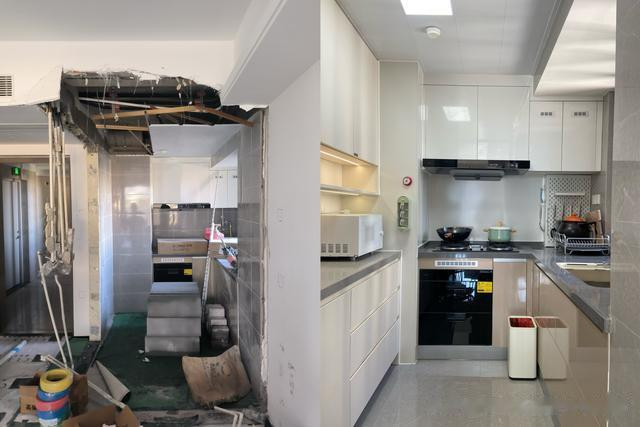3.原本厨房的L型橱柜操作台面比较局促,狭小拥挤
